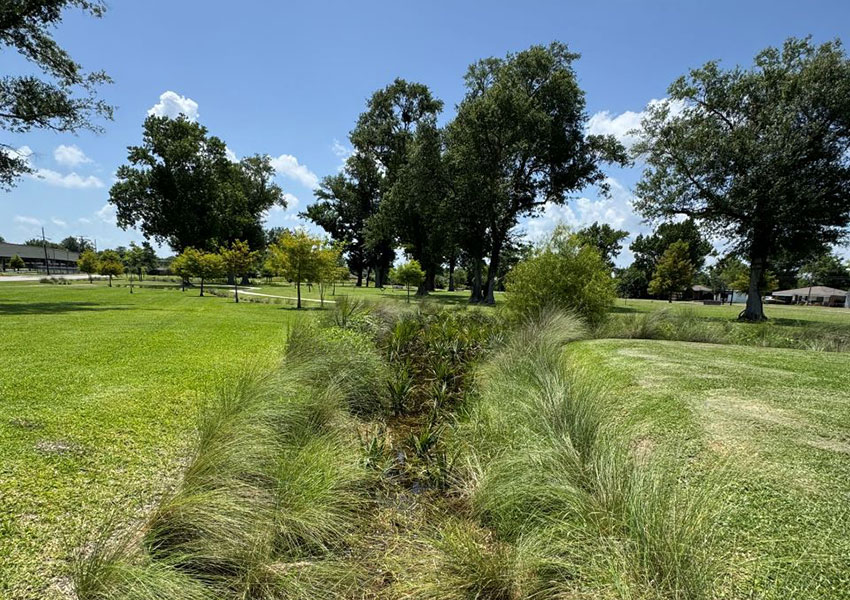 Championed by park and recreation professionals, Lake Charles has embraced nature-based solutions that serve multiple purposes, including flood control, habitat restoration and community resilience through education. At Hillcrest Park, a bioswale featuring cypress trees and native species now protects a nearby elementary school and subdivision from flooding. A similar system at Tuten Park addresses neighborhood flooding while maintaining recreational access.