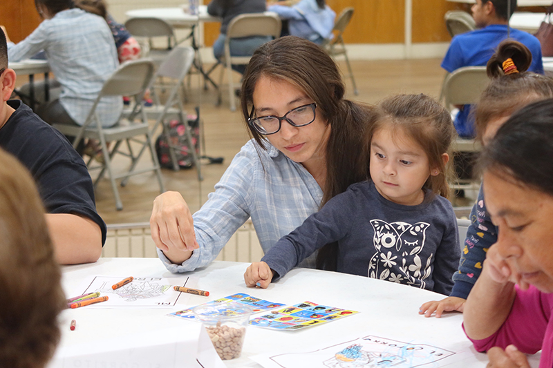 A mom and daughter play Lotería, a Bingo-style game that originated in Mexico. Photo courtesy of Waukegan Park District.