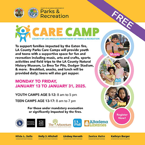 During recent the Eaton Fire, DPR organized Care Camps to support families under mandatory evacuations or directly affected by the wildfires. These camps provided children aged 5-12 with a safe environment to learn and play, allowing parents to focus on recovery efforts. In partnership with organizations such as the Dodgers Foundation, the Natural History Museum, the La Brea Tar Pits, the Los Angeles County Arboretum, Descanso Gardens, the LA Philharmonic and Altadena Libraries, the camps offer field trips, activities and meals at no cost to families. By addressing immediate needs and fostering a sense of community, DPR's initiative exemplifies adaptability and compassion during challenging times.