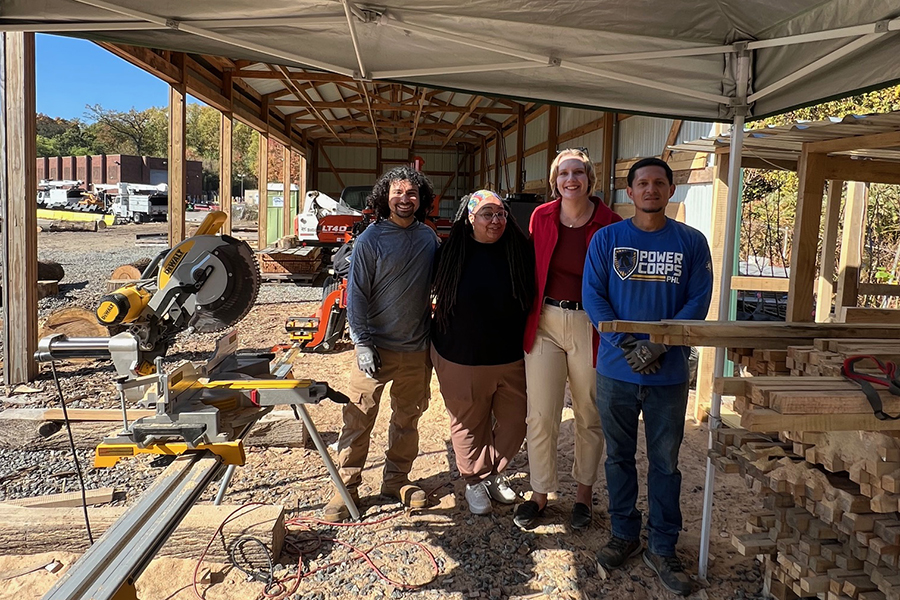 Alongside the long rows of drying compost and mulch sits the Reforestation Hub, a public-private partnership with Cambium Carbon (a Circular Economy innovator business that tackles environmental challenges in supply chains), PowerCorps (a Job Corps organization that provides youth paid programs in sustainable careers) and the City of Philadelphia. The Reforestation Hub, through the power of these partnerships, brings together recycling, workforce development, and environmental stewardship. Here PowerCorps members assist with urban forestry efforts, milling and operations, working to use the timber brought to the Fairmount Park Organic Recycling Center for City projects. This impressive example highlights the success of combining recycling and workforce program initiatives to meet public needs on multiple levels.