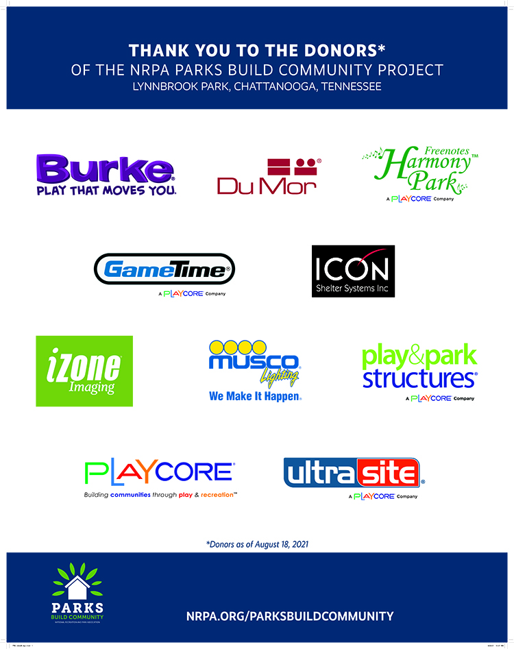 NRPA’s Parks Build Community is revitalizing Lynnbrook Park in Chattanooga, Tennessee. With the 2024completion of the project, Chattanooga’s Oak Grove community has a central place where families and friends can gather and where children can play and discover the wonders of nature.