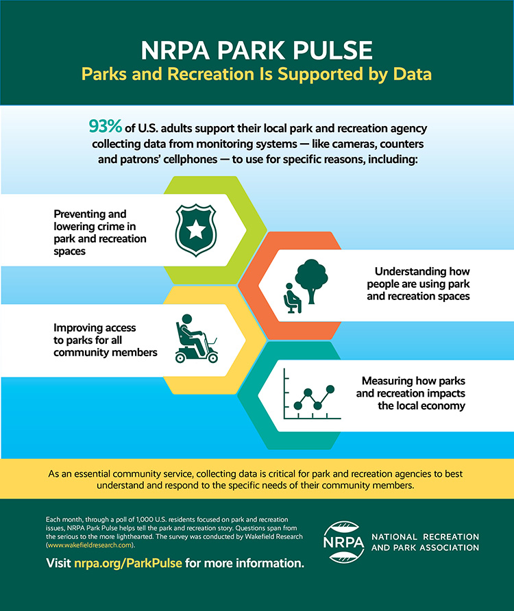 93% of U.S. adults support their local park and recreation agency collecting data from monitoring systems — like cameras, counters and patrons’ cellphones — to use for specific reasons, including: