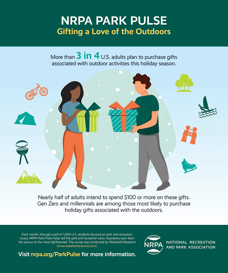 Adults throughout the United States intend to give the gift of outdoor activities this holiday season. Whether athletic shoes or clothing, sports or exercise equipment, exercise classes or lessons, camping or outdoor gear, bikes and more, giving a gift of outdoor activities is giving the gift of health and wellness.