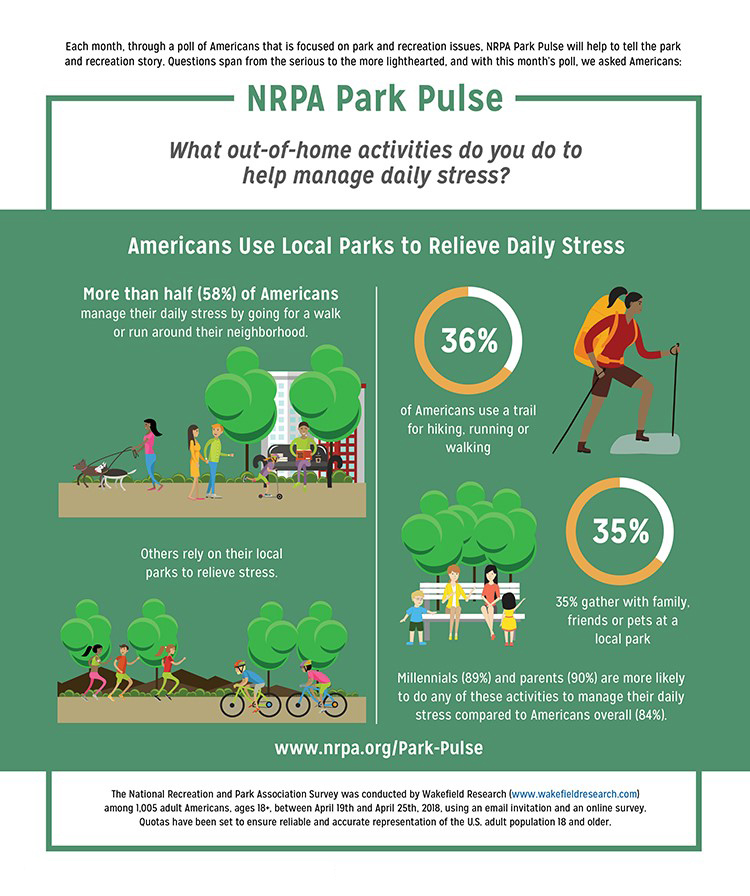 - One in three Americans visit their local parks with friends, family members or pets to de-stress