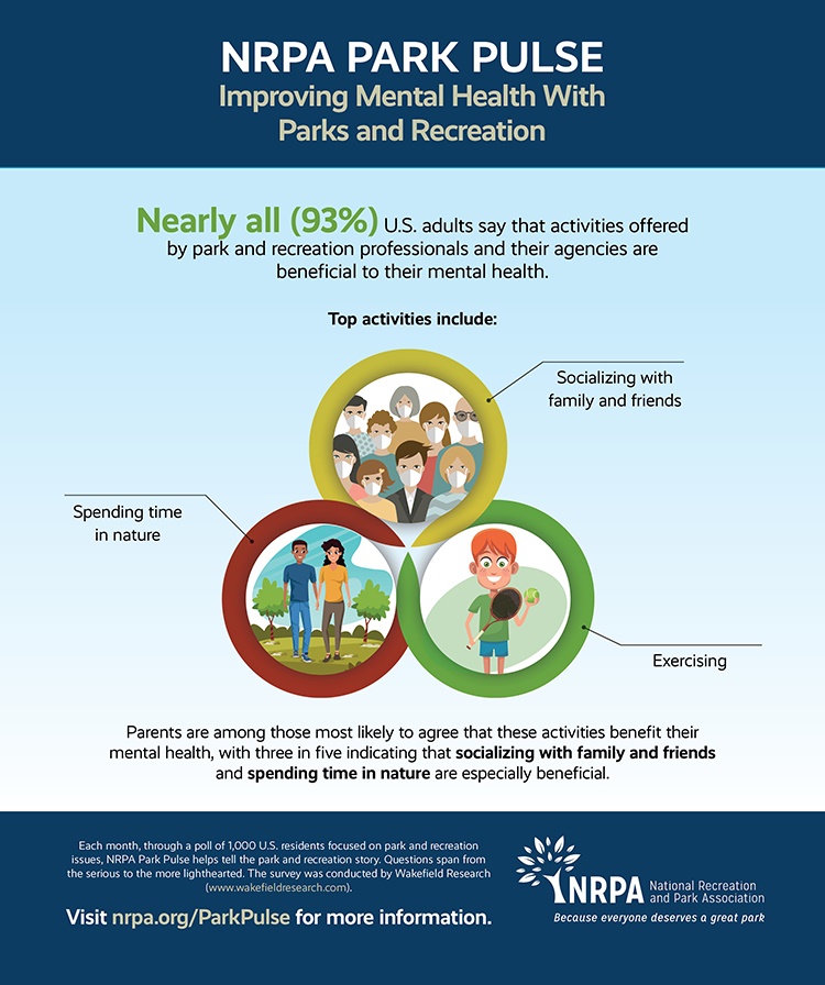 - Ninety-three percent of U.S. adults say their mental health is improved by services offered by local park and recreation professionals and agencies.