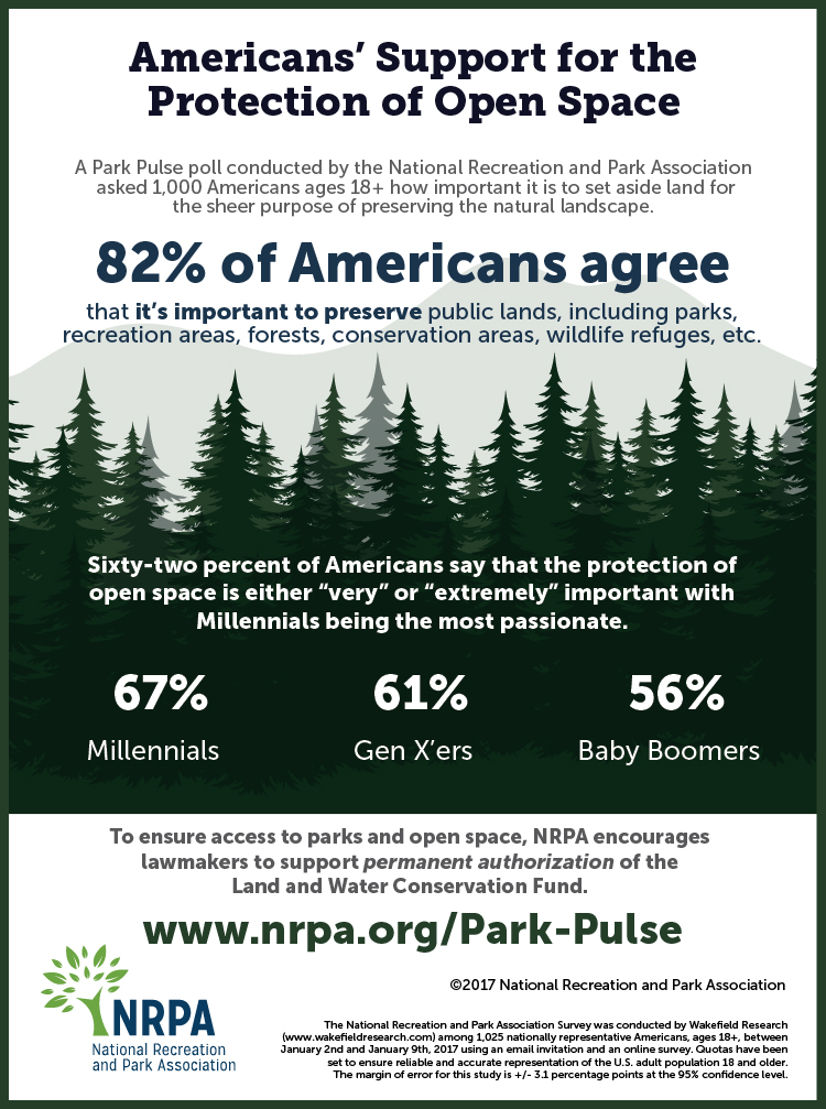 - Eighty-two percent of Americans agree it is important that their local government sets aside land for the sheer purpose of preserving the natural landscape.