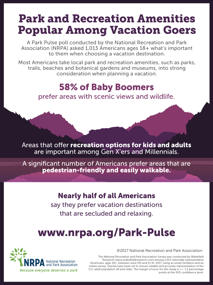 Tourism often plays a huge role in the success and growth of park and recreation agencies. The same agency that keeps your child's playground well maintained down the street may also be drawing in thousands of people a year to walk through their botanical gardens. When it comes to choosing a vacation destination, waterfronts, nature & relaxation, walkability, and centers for culture and wildlife viewing are Americans’ go-to. It is no surprise that beaches and waterfronts lead the list of being important to vacationers. What might be surprising to those travelers is the number of vacation destinations run by local, county, and regional park and recreation agencies.