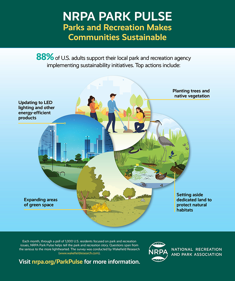 - 88 percent of U.S. adults support their local park and recreation agency implementing sustainability initiatives.