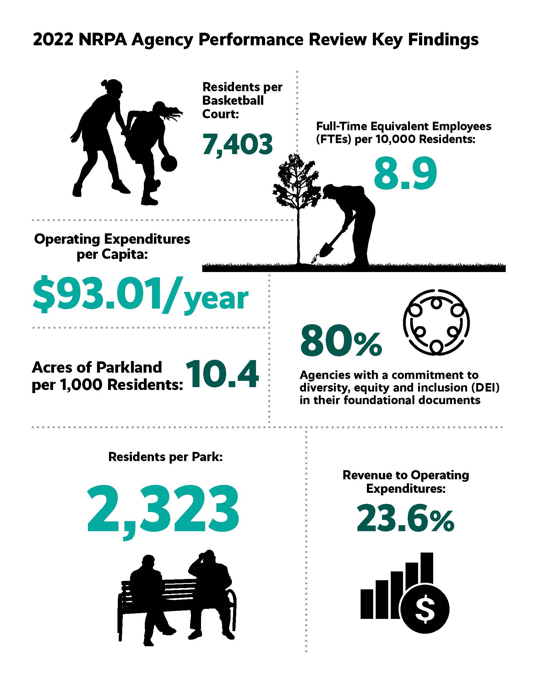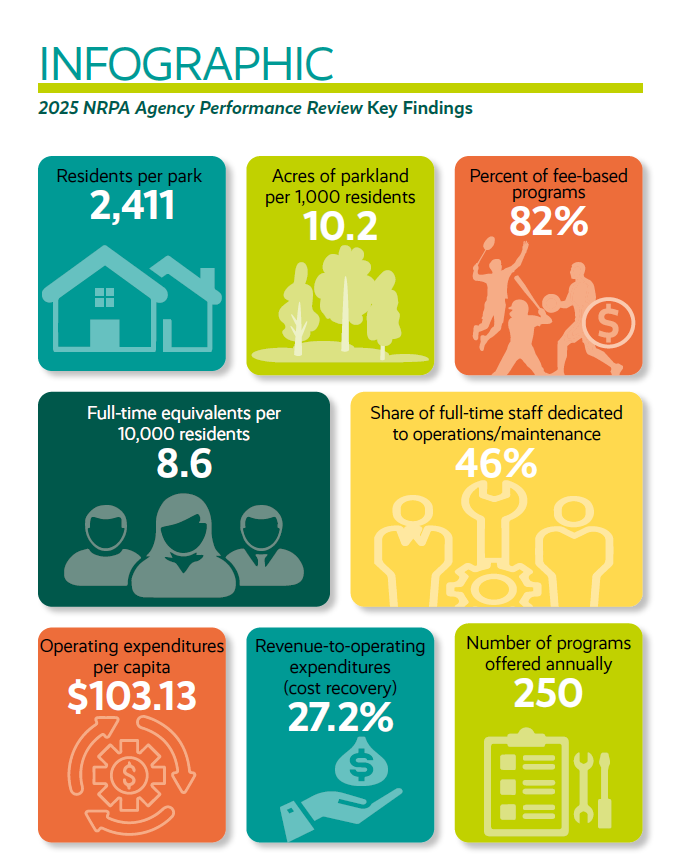 Dig deeper into the performance benchmarks presented in the 2025 NRPA Agency Performance Review with the interactive figures below. This data presents detailed crosstabs for every table and chart presented in the report.