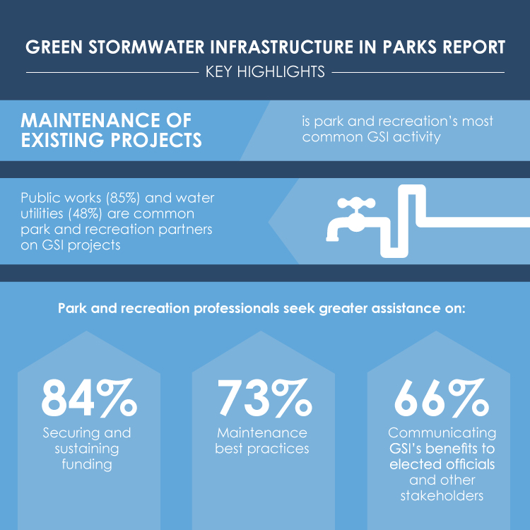 In August 2019, NRPA surveyed park and recreation leaders to understand better how their agencies use GSI at the local level. The survey results highlight green infrastructure projects at park systems, including issues surrounding funding, stakeholder engagement, and how to measure these investments’ long-term benefits.