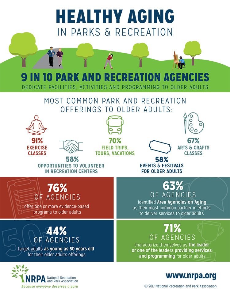 - Park and recreation agencies are a major provider of services for older adults in their communities — frequently one of just a few organizations in their areas that directly serve this population.
