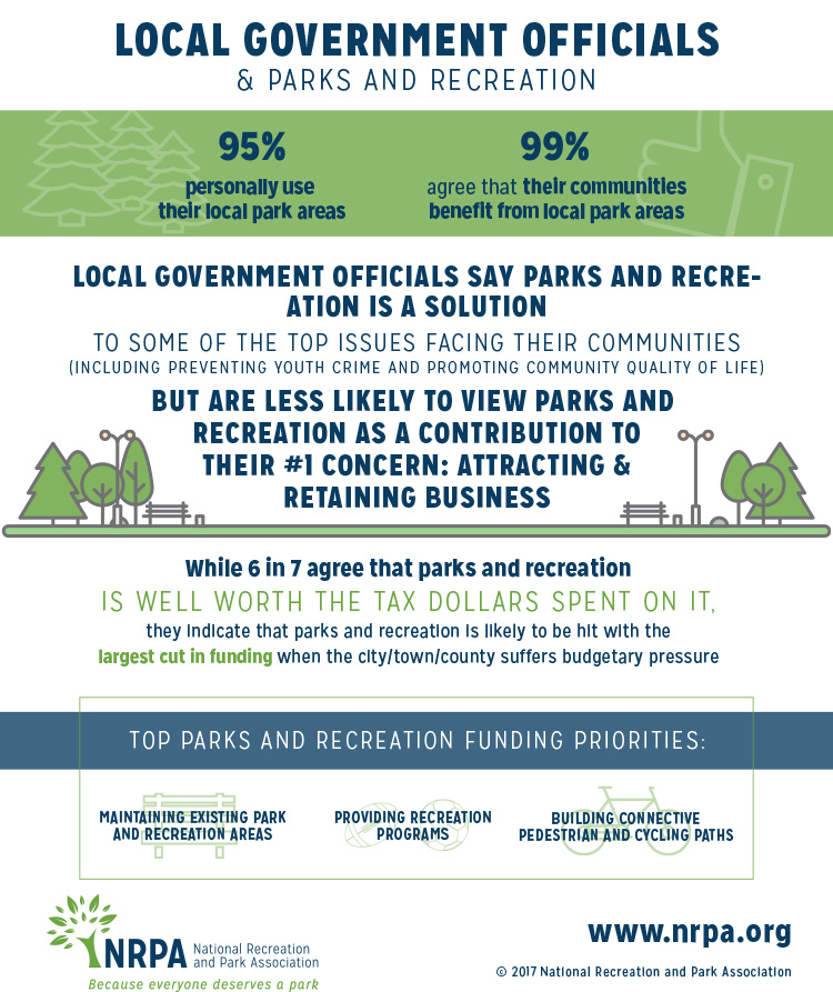 Local government officials are heavy park users and are firmer believers in the great benefits that parks and recreation brings to their community. This includes: